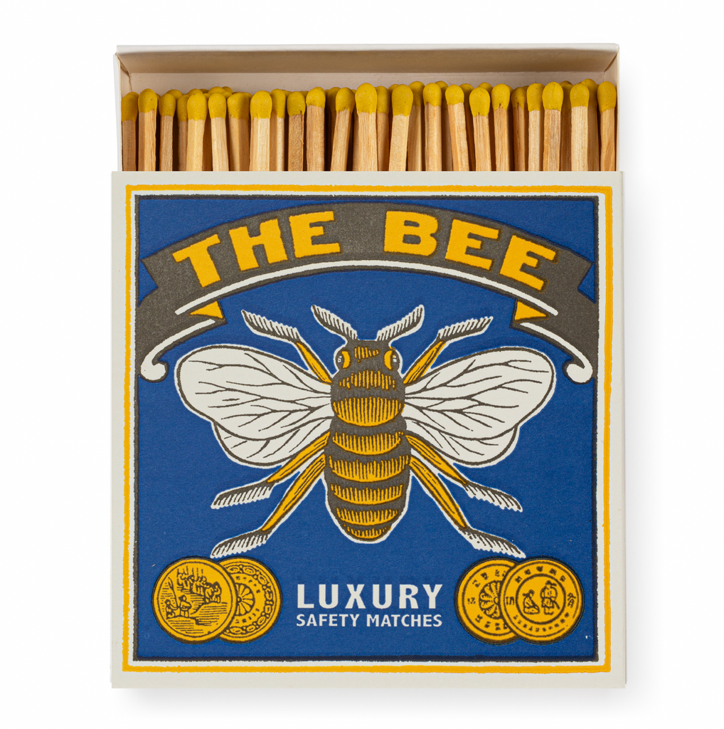 Tændstikkerne kommer i en super fin æske med et smukt motiv. Æskerne er trykt på en bogtrykmaskine, som man brugte i gamle dage til at lave bog forsider.