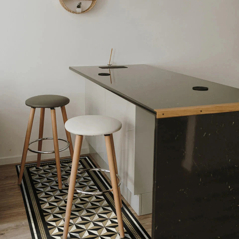 Fantastik vinyl måtte til gulvet - der holdes solidt på plads af sin egen vægt.