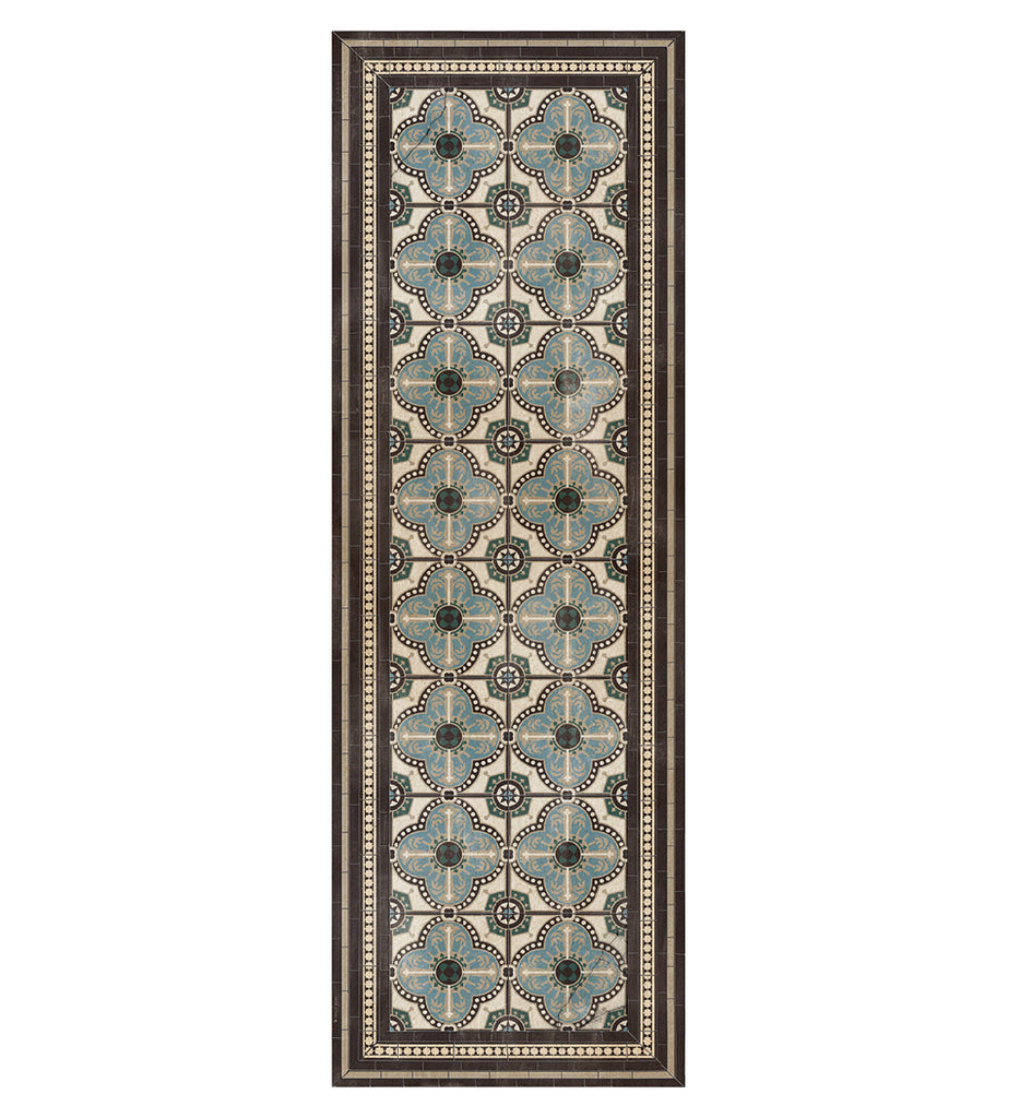 Fantastik vinyl måtte til gulvet - der holdes solidt på plads af sin egen vægt.