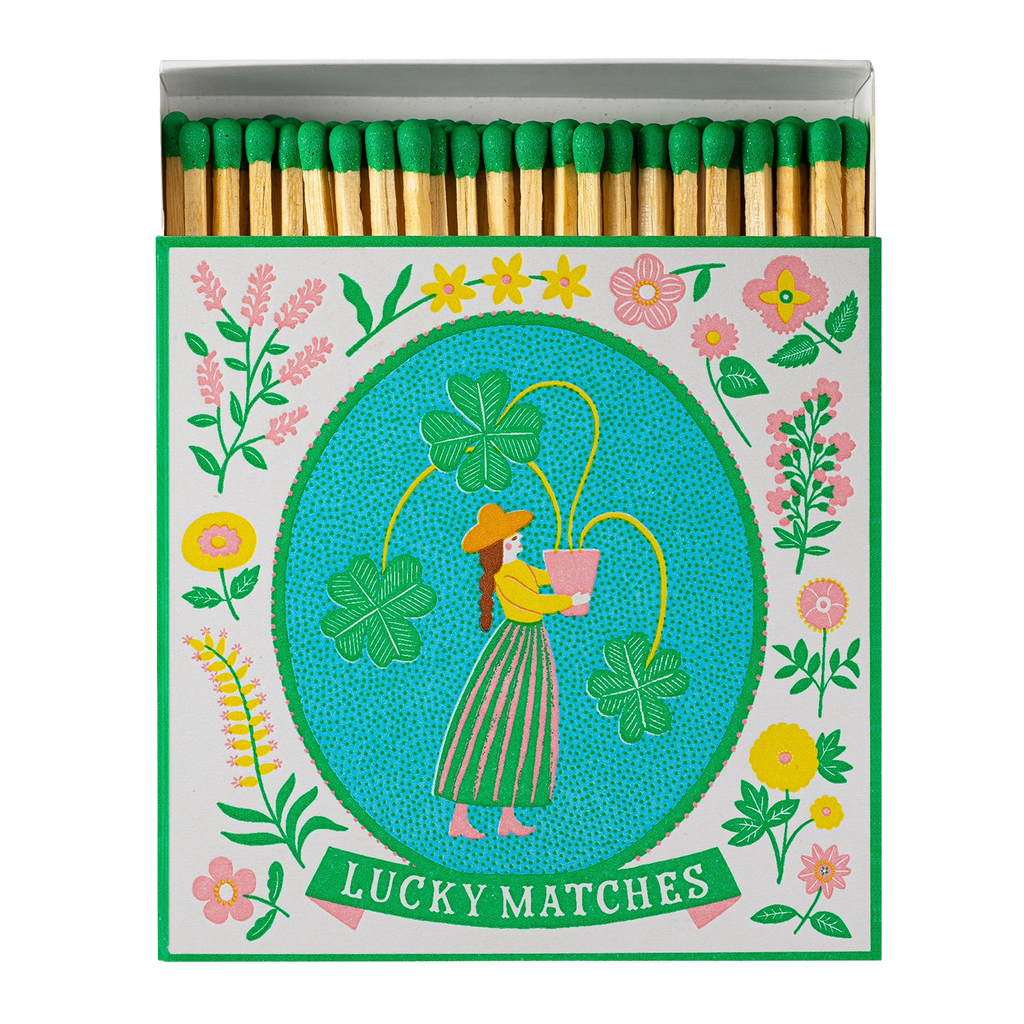Tændstikkerne kommer i en super fin æske med et smukt motiv. Æskerne er trykt på en bogtrykmaskine, som man brugte i gamle dage til at lave bog forsider.