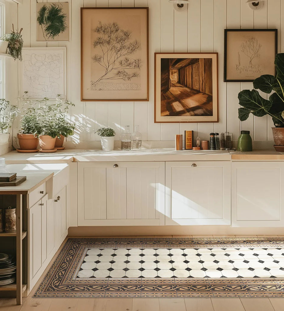 Fantastik vinyl måtte til gulvet - der holdes solidt på plads af sin egen vægt.