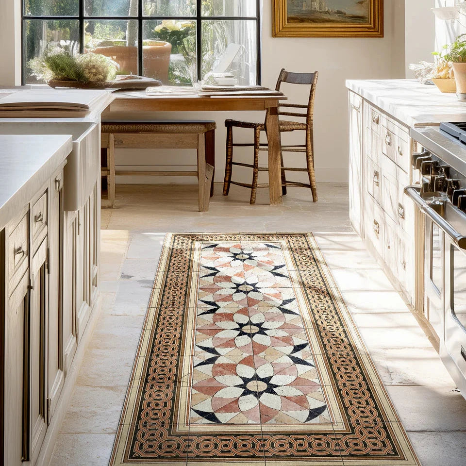 Fantastik vinyl måtte til gulvet - der holdes solidt på plads af sin egen vægt.